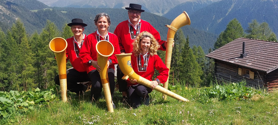 Wir sind das Doppel-Duo aus Bergün im romantischen Albulatal. Gerne spielen wir auch für Ihren Anlass.
